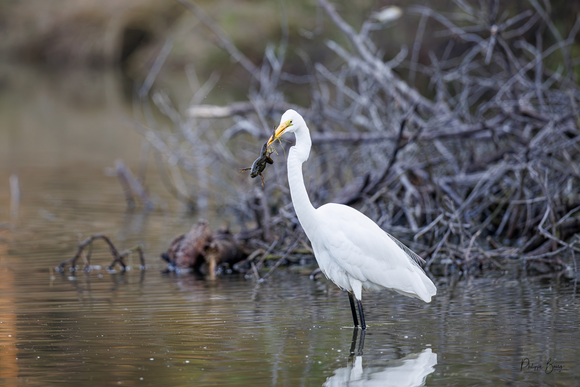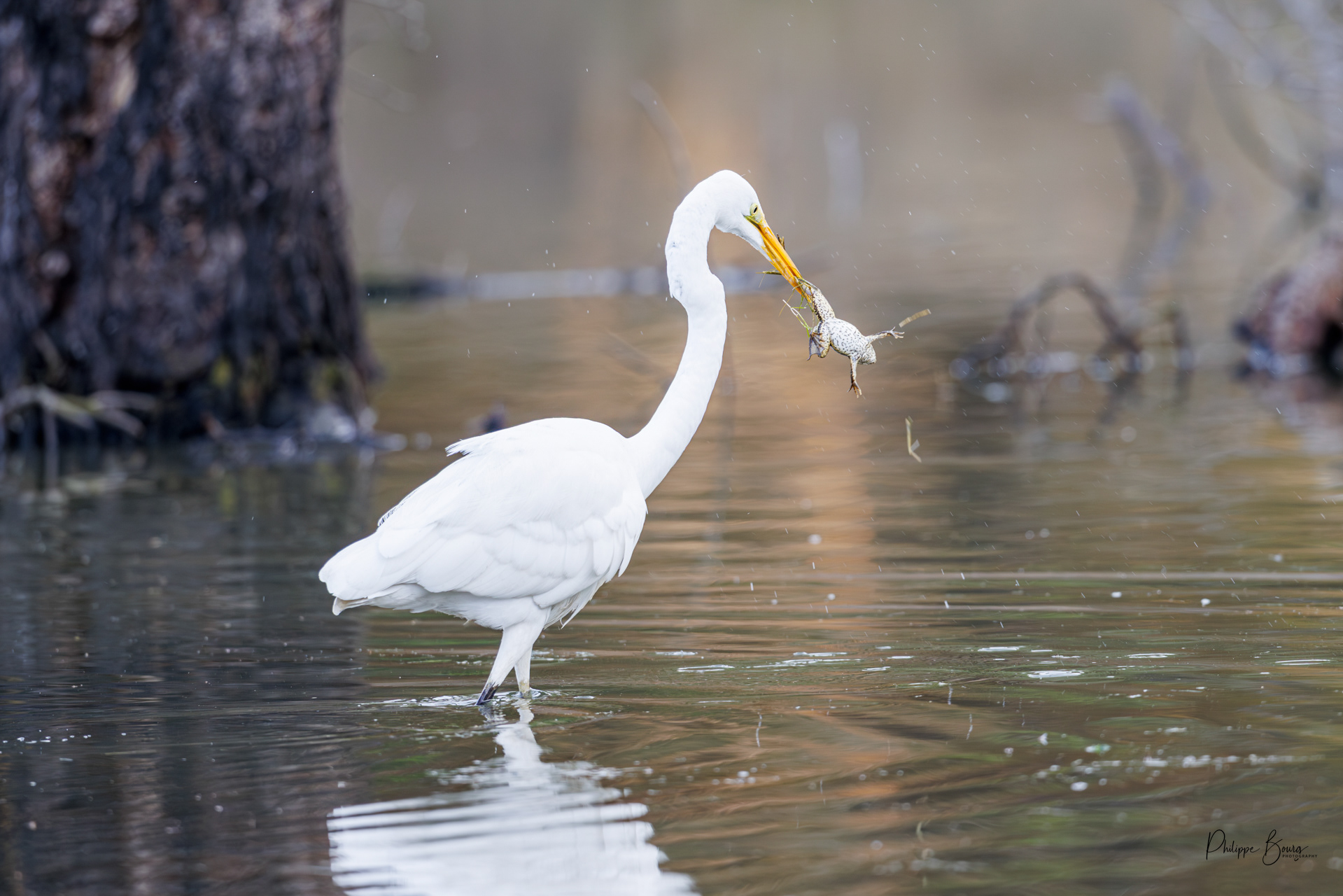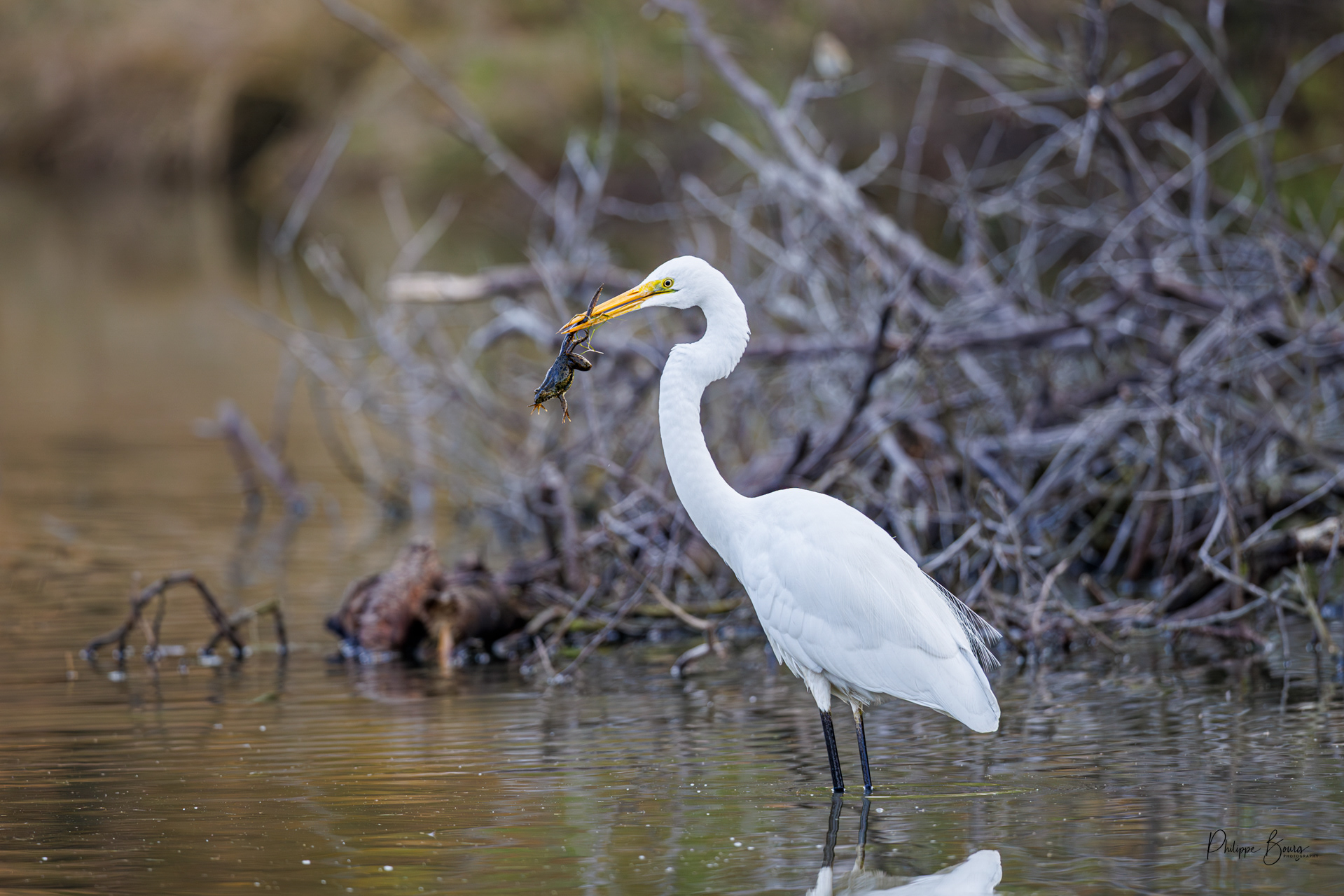 Grande Aigrette et Grenouille / Great Egret and Frog