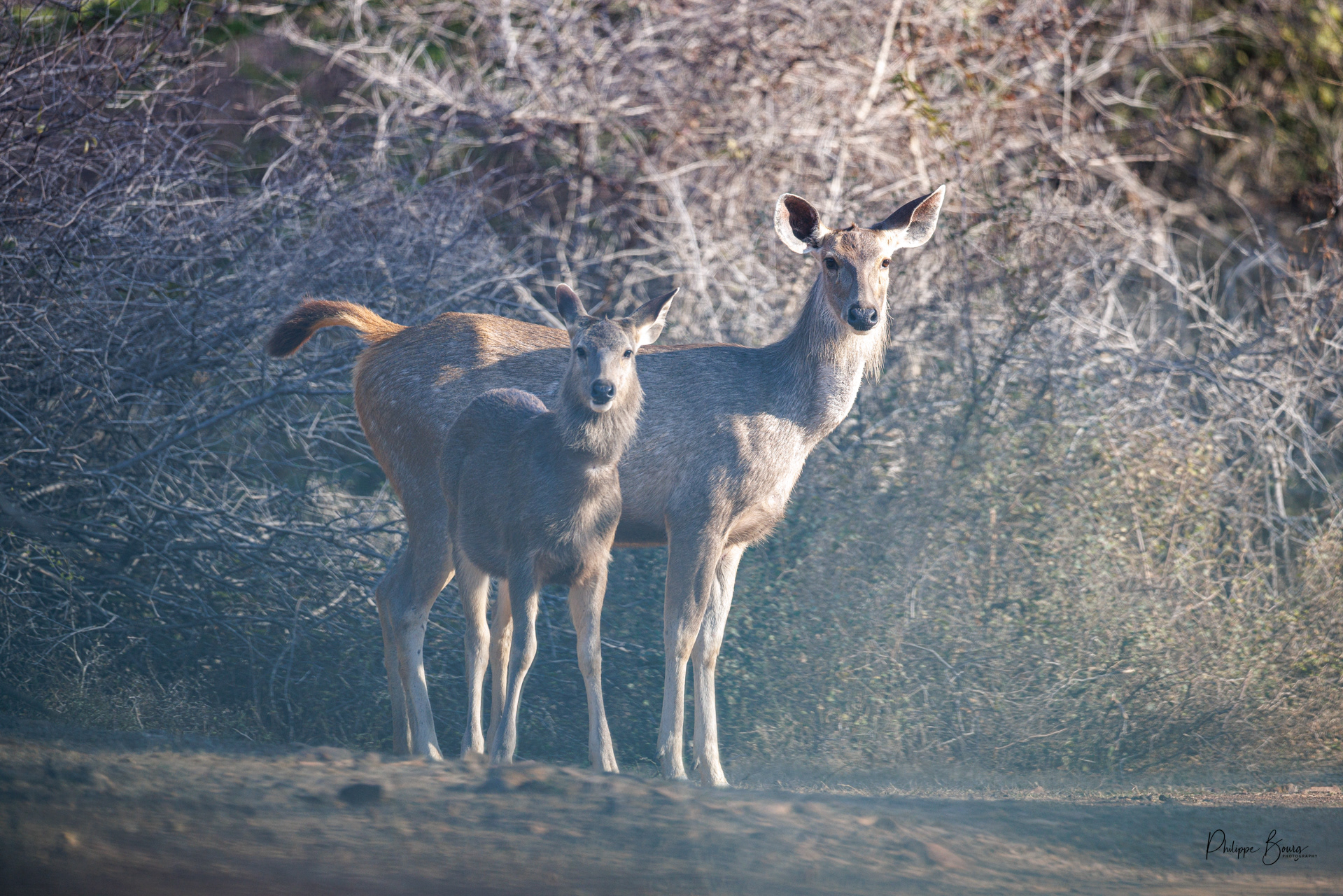 Cerf Sambar (Biche et faon) / Sambar Deer (Doe and young)